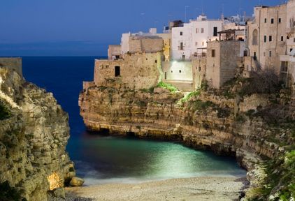 Полиняно а Маре е град, издигнат върху внушителни отвесни скали. Пред портите му в миналото е минавал Римския път „Виа Траяна“. В наши дни, крайбражието е познато с кристалночистото си море, двадесет километровата си плажна ивица и големия брой пещери, издълбани в скалите. Специфичната архитектура допълва естествените красоти на това градче, познато с прозвището “Перлата на Адриатика”. Скалистото крайбрежие на Полиняно а Маре е пълно с естествени заливи, които през зимата са служели за убежище на рибарските лодки, а днес всяко лято привличат неспирен поток от туристи. Терасите в стария град предлагат невероятни панорамни гледки, докато вятърът носи звуците на позната песен Volare – изпята за пръв път от родения тук Доменико Модуньо. Тук можете да опитате сандвич с октопод, кафе „Спечале“ – запазената марка на града и чудесен сладолед!